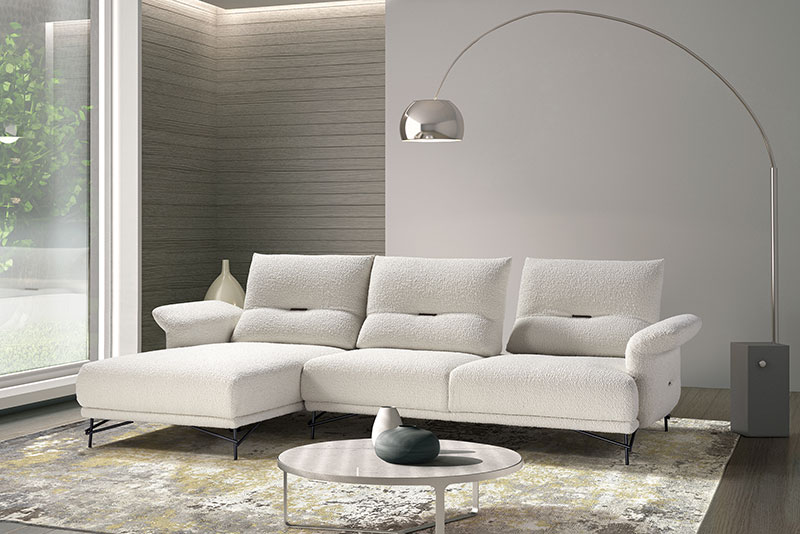 De la même façon que le noir, le blanc fait partie des couleurs incontournables pour les canapés. Symbole de paix et de calme, cette teinte claire est idéale pour illuminer une pièce comme le salon. Doux et apaisant, le blanc habille avec élégance les courbes arrondies d’un canapé d’angle en tissu. Il se plaît particulièrement bien sur les tissus bouclette, pour un effet très tendance. Avec leur effet texturé, ces revêtements moelleux et cotonneux apportent de la chaleur et donnent une touche cocooning aux canapés d’angle blancs. Pour un intérieur à l’ambiance très contemporaine, votre choix pourra se porter sur un canapé avec des pieds fins en métal noir. Il contrastera avec la pureté du blanc. L’avantage de cette teinte neutre et lumineuse ? Vous pourrez la marier avec tous les styles de déco et meubler votre salon sans surcharger l’espace intérieur ni l’atmosphère.